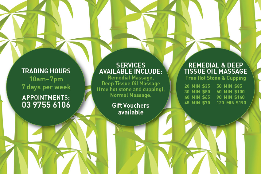 About Us Services available include: Remedial Massage (free hot stone and cupping), Deep Tissue Oil Massage (free hot stone and cupping), Normal Massage and Gift Vouchers.